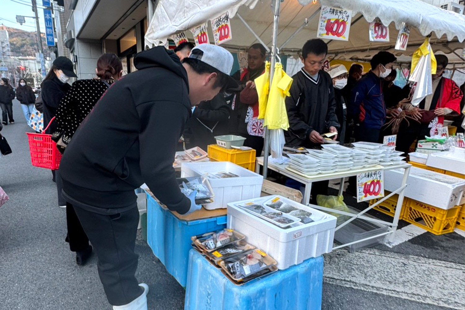 神戸で獲れたしらすや鮮⿂をイベント出店や地域⾏事などを通して、新鮮なおいしさをその場で味わっていただけます。 -